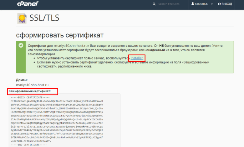 Установка SSL-сертификата
